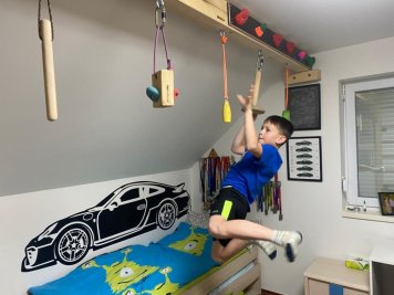 Děti, které se nemohou dočkat jara, aby zase mohly trénovat venku, mají náhradní řešení i ve svém pokoji. Žebřiny, ručkovací trám s chyty, trny a oky na závesné komponenty. Žebřiny s hrazdami vyjdou cenově kolem 7-9 tisíc (závisí na rozměrech a počtu příček), trám s ručkovacími prvky pak lze počítat 1000 - 1500 za metr - dle konkrétního typu ručkování. Celková cena samozřejmě závisí na konkrétních rozměrech a také způsobu montáže a dopravy. Rádi vám vše spočítáme, ozvěte se nám.