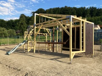 Tahle sestava kombinuje prvky pro tátu OCR závodníka a dětskou skluzavku a prostor pro houpací prvky. Tatínkova tréninková část pak obsahuje rybí schůdky, vzestupné ručkování, šplhací patro, lenochoda, síť, lezecký roh a mnoho ručkovacích segmentů.