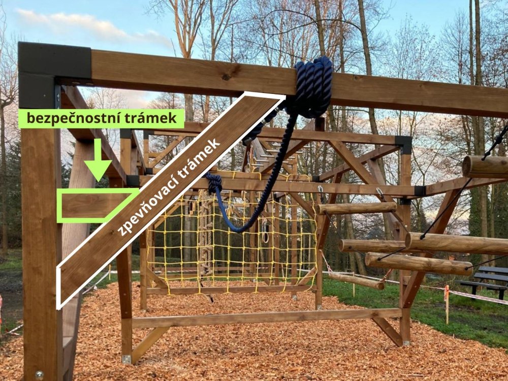 - Aby hřšitě odpovídala normě, přidáváme sem bezpečnostní trámky (viz nákres).
